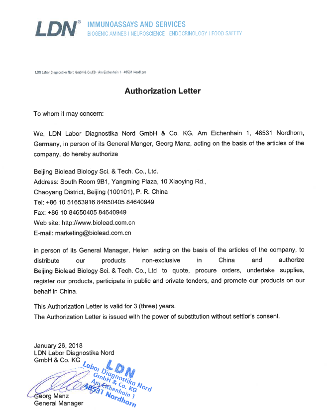 2018年北京博蕾德生物正式成為LDN 授權(quán)中國區(qū)授權(quán)代理商,為廣大科研用戶提供全線的LDN激素檢測(cè)產(chǎn)品的銷售和售后服務(wù)。
