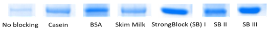 • StrongBlock I-III demonstrates better blocking performance than BSA, Casein and skim milk.