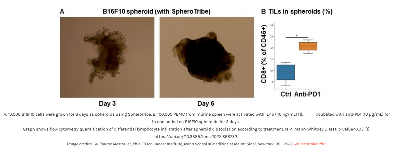 SpheroTribe is particularly useful to boost aggregation when working with challenging cells, minimize variability between samples and improve the consistency of your migration/invasion assays, immunostaining, drug screening or in vivo implantation experiments.