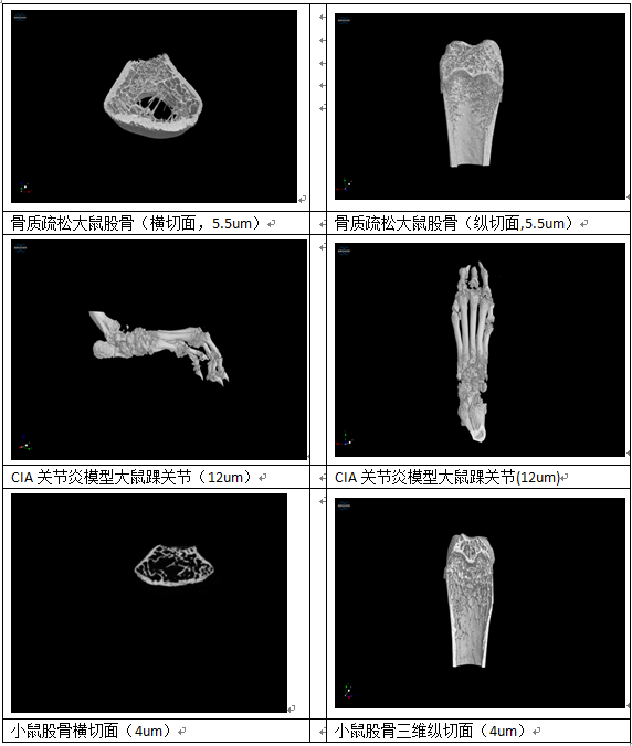 用于骨質(zhì)疏松和關(guān)節(jié)炎動物模型潛伏期的骨結(jié)構(gòu)和密度改變的研究。MicroCT是目前研究骨立體結(jié)構(gòu)、容量和微結(jié)構(gòu)細(xì)微改變最好的方法。