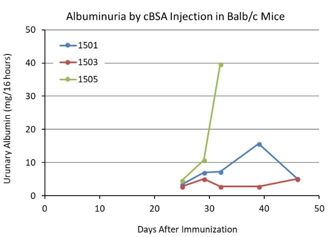 1.Chen, J.S., et al., Mouse model of membranous nephropathy induced by cationic bovine serum albumin: antigen dose response relations and strain differences. Nephrol Dial Transplant 19(11):2721-8 (2004).