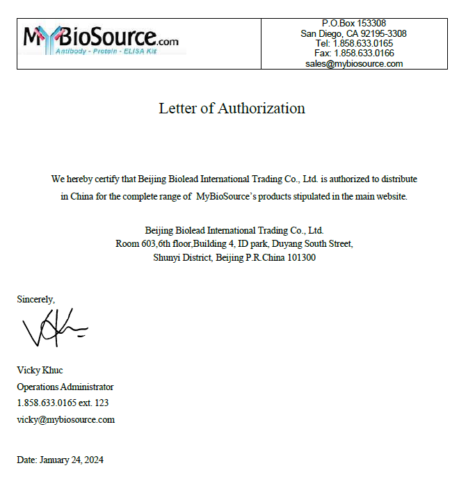 Mybiosource 授權(quán)書(shū)