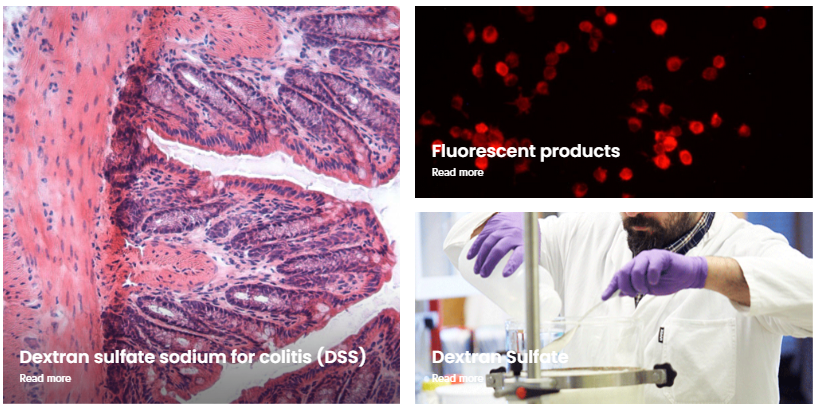 硫酸葡聚糖為白色粉末,可自由溶于水或鹽溶液,得到澄清溶液。 葡聚糖硫酸鹽可以以寬范圍的分子量和硫酸化程度生產(chǎn)。該范圍內(nèi)的每種產(chǎn)品的硫含量為16- 20%。葡聚糖硫酸鹽作為一種有效的聚陰離子,提供了許多有趣的藥理學(xué)和生物物理學(xué)特性。以下是一些應(yīng)用領(lǐng)域的例子: