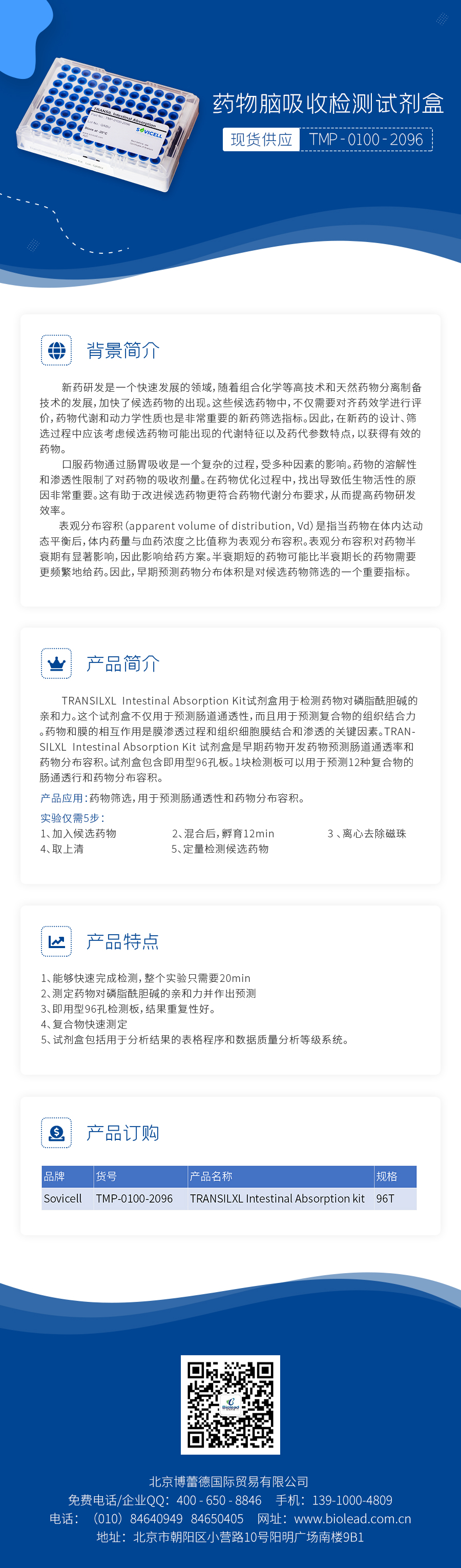 下一篇:藥物腦吸收檢測(cè)試劑盒TRANSILXL Brain Absorption Kit