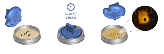 凝膠V型孔制備(3D細(xì)胞成像),Stampwell只需一次即可在水凝膠中壓印V形孔。沒有什么比把你的樣品加載到井里和圖像更重要的了。Stampwell形狀已針對球體狀細(xì)胞和類器官的成像進(jìn)行了優(yōu)化。