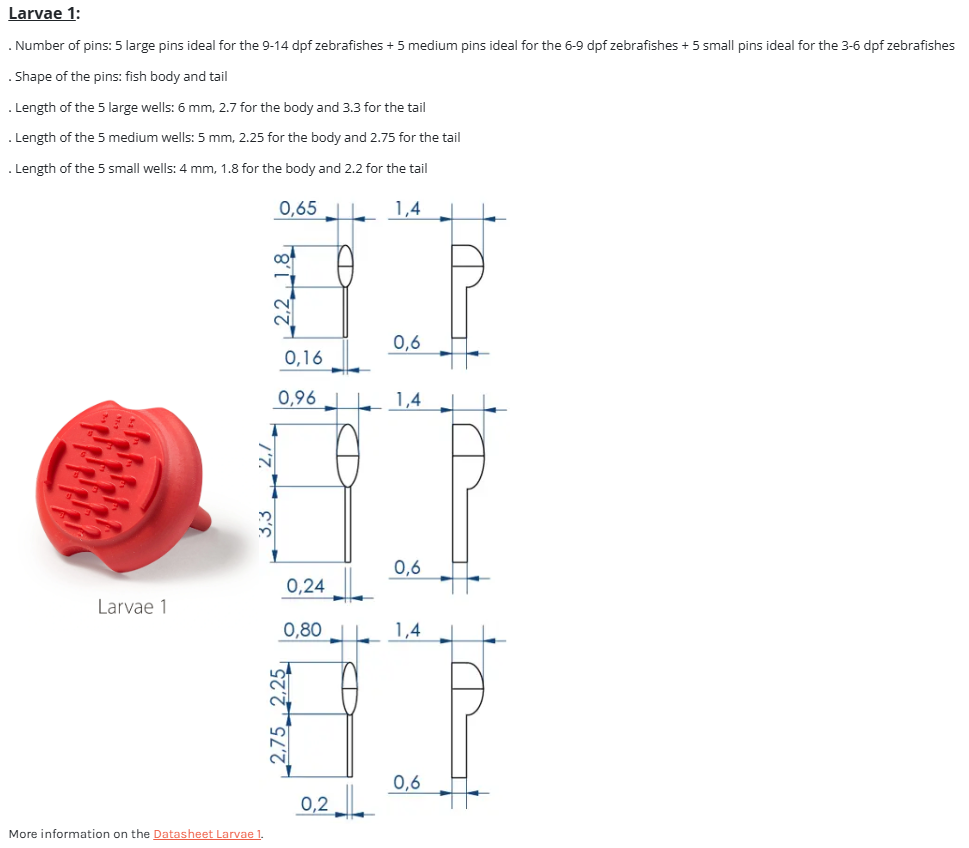 Stampwell stamps imprint arrays of wells in hydrogels in just one time. Nothing more to do than load your samples into the wells and image. The Stampwell shapes have been optimized for the imaging of fish embryos or larvae up to 20 dpf.