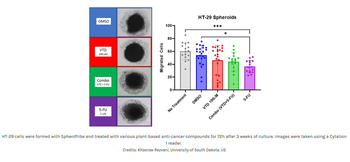 Once spheroids have grown to your desired size, you can use them for any kind of assay according to your regular workflow. The SpheroTribe solution can be readily washed off, leaving a spheroid available for other tests at any stage of your protocol.